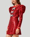 This dress features a crew neckline and is made of ultra-soft ribbed material for a close-fitting fit. The long sleeves, mini length, and stretch material make it easy to slip on and off for both comfort and style.