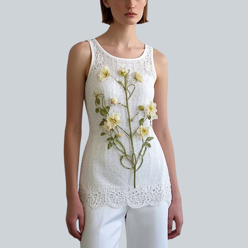 Elegant Exquisite Floral Embroidered Women’s Tank Top
