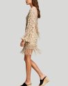 This dress features a crew neckline and is made of ultra-soft ribbed material for a close-fitting fit. The long sleeves, mini length, and stretch material make it easy to slip on and off for both comfort and style.