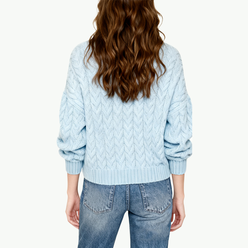 This women’s knit sweater features long sleeves and a relaxed fit that suits most body types. It’s perfect for everyday wear by young women and ideal for girls going to school casually. This adorable sweater combines comfort and warmth, sure to brighten your day!