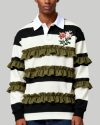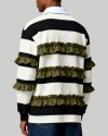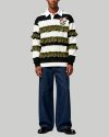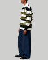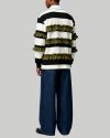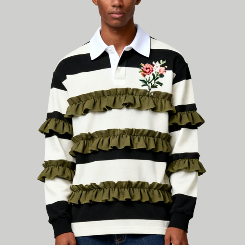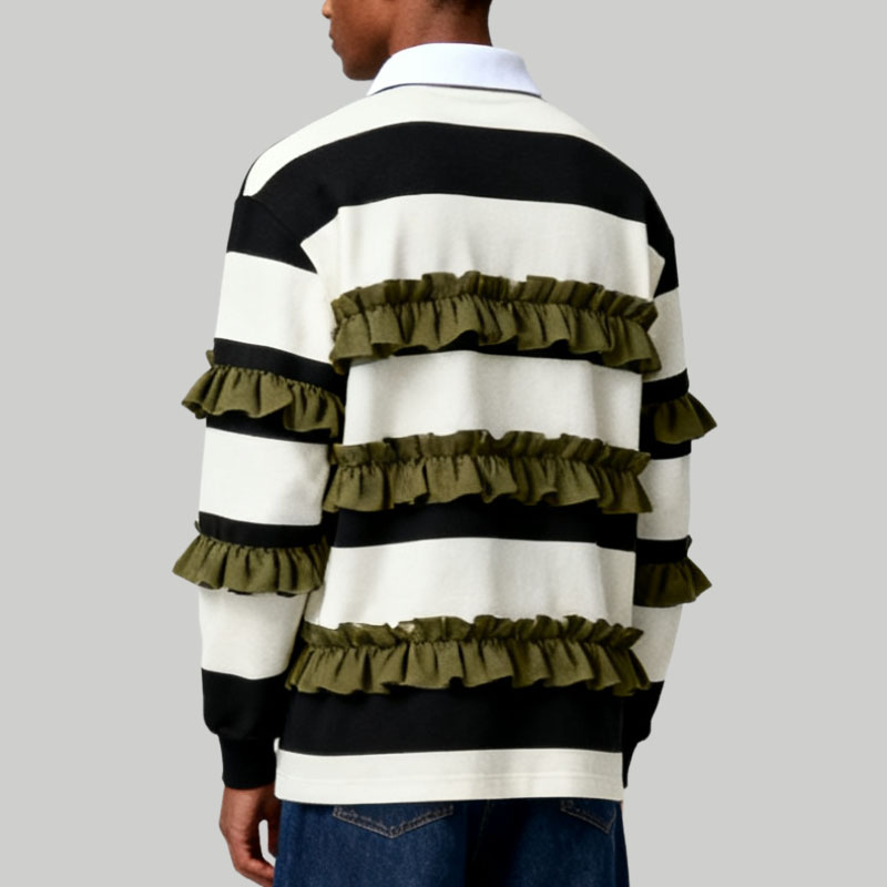 Men’s Black and White Striped Polo Sweater Fashion Long Sleeve Top