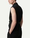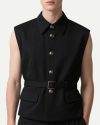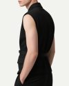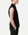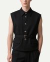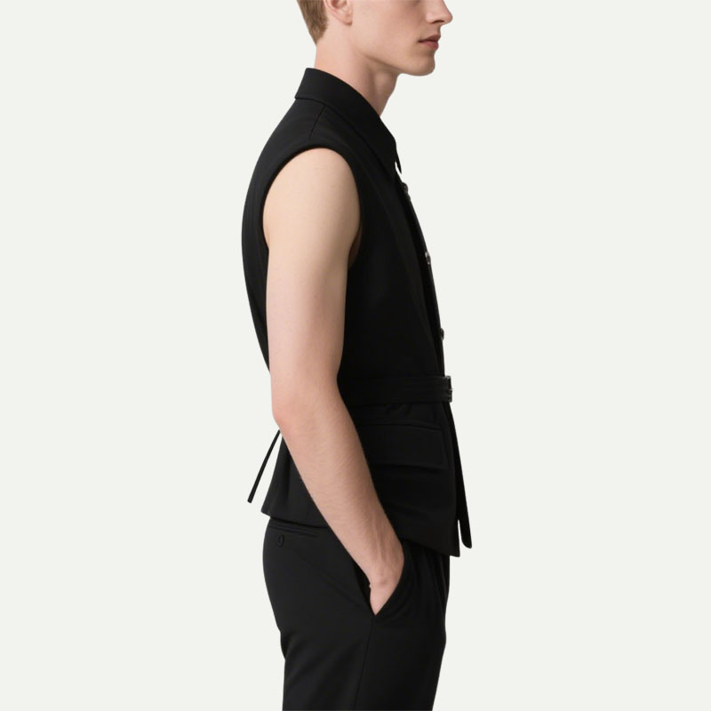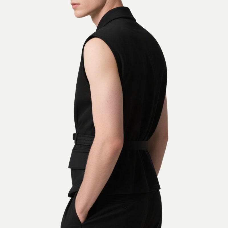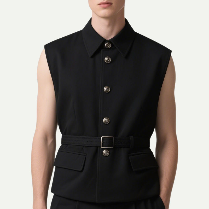 Men’s Black Button Up Vest with Belt Tailored Sleeveless Outerwear