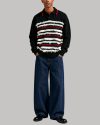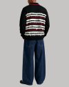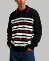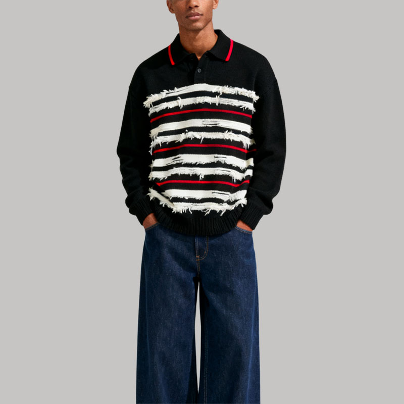 Men’s Black Polo Sweater with Red Trim and Fringed Stripes
