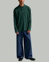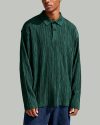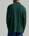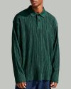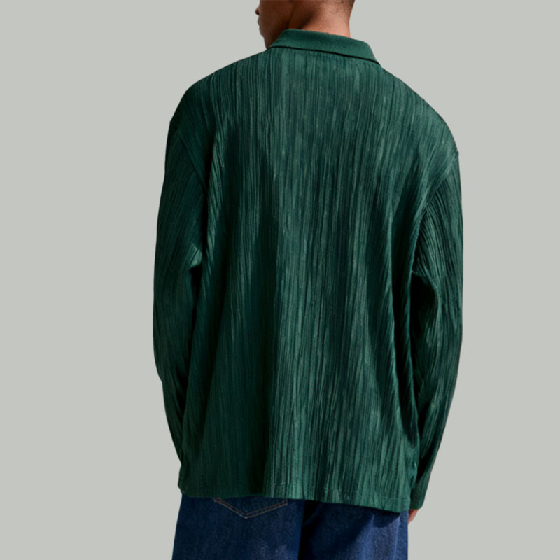 Men’s Dark Green Ribbed Polo Shirt Stylish Long Sleeve Casual Top