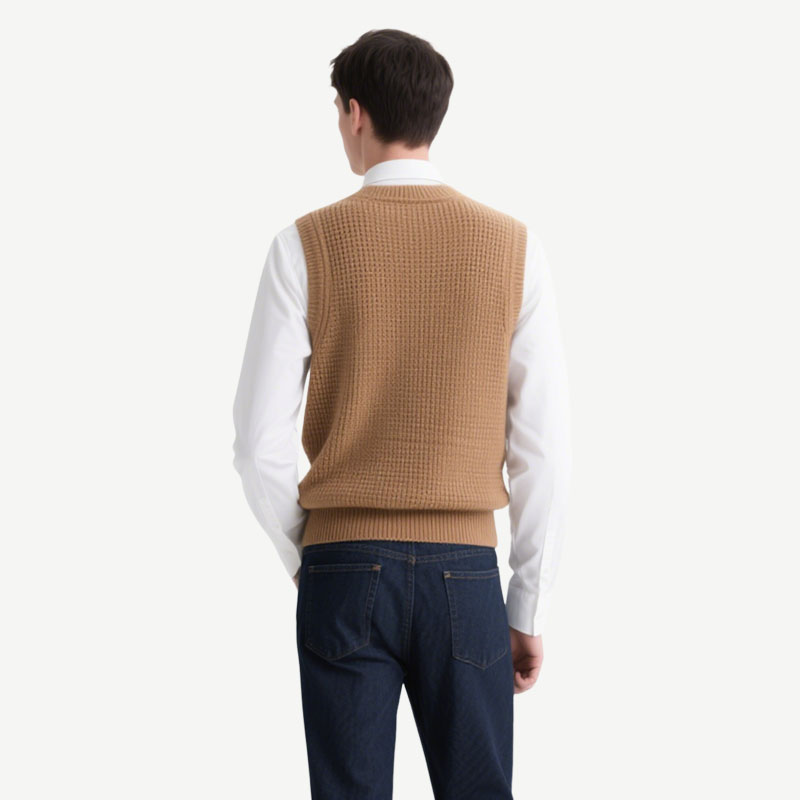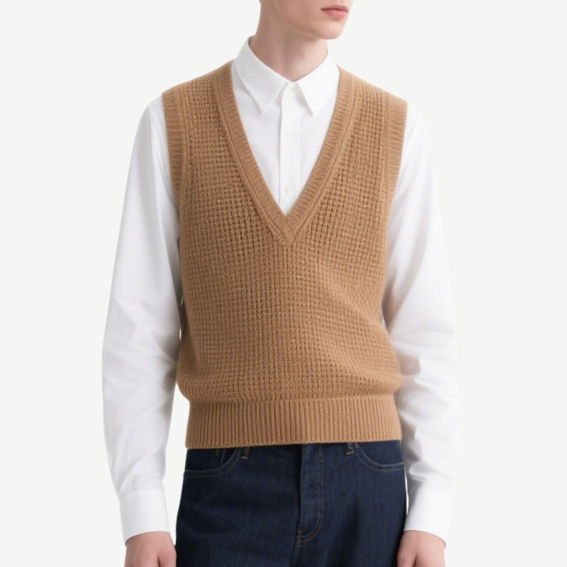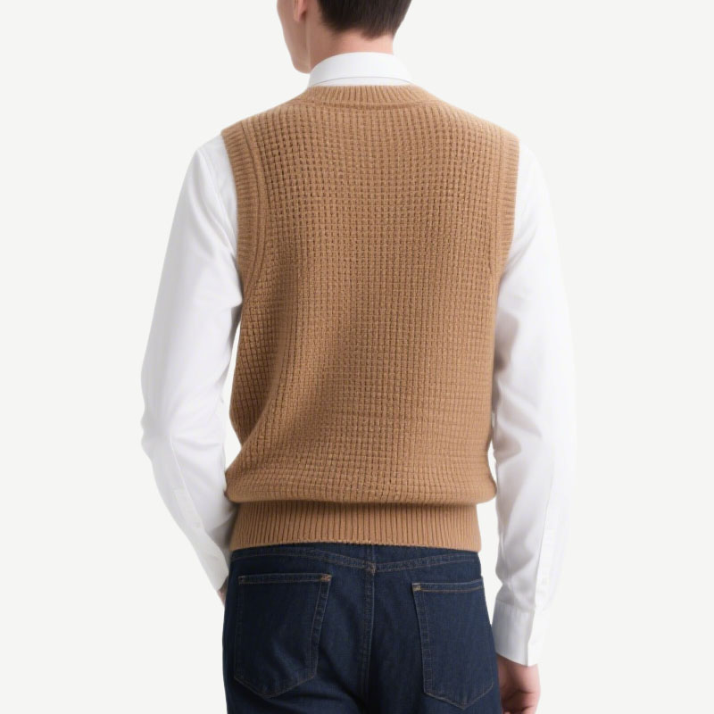 Men’s Khaki Knit V-Neck Vest Classic Sleeveless Sweater Vest