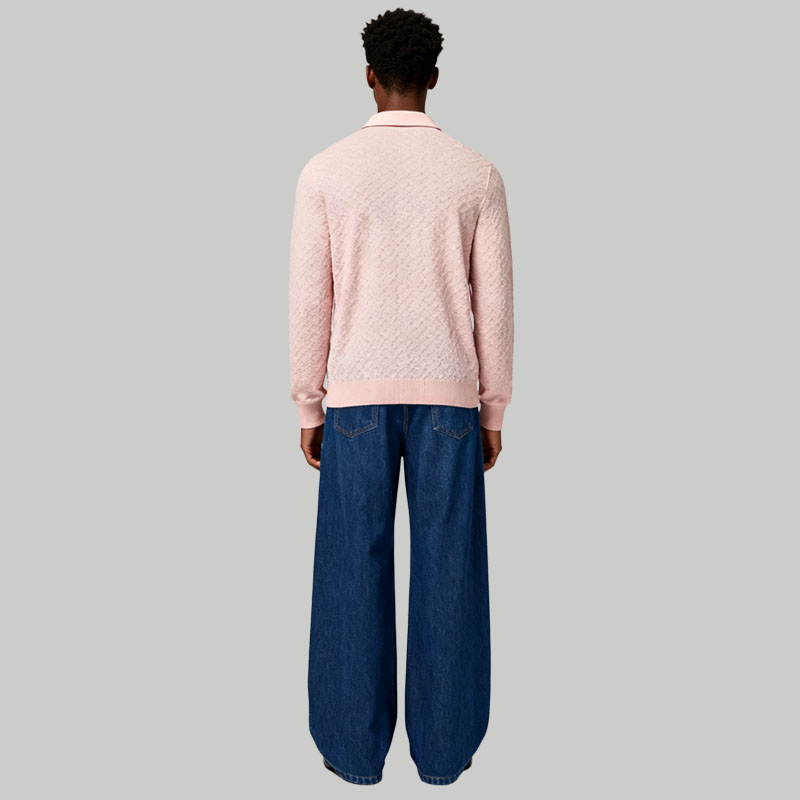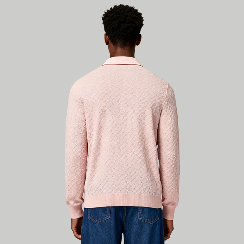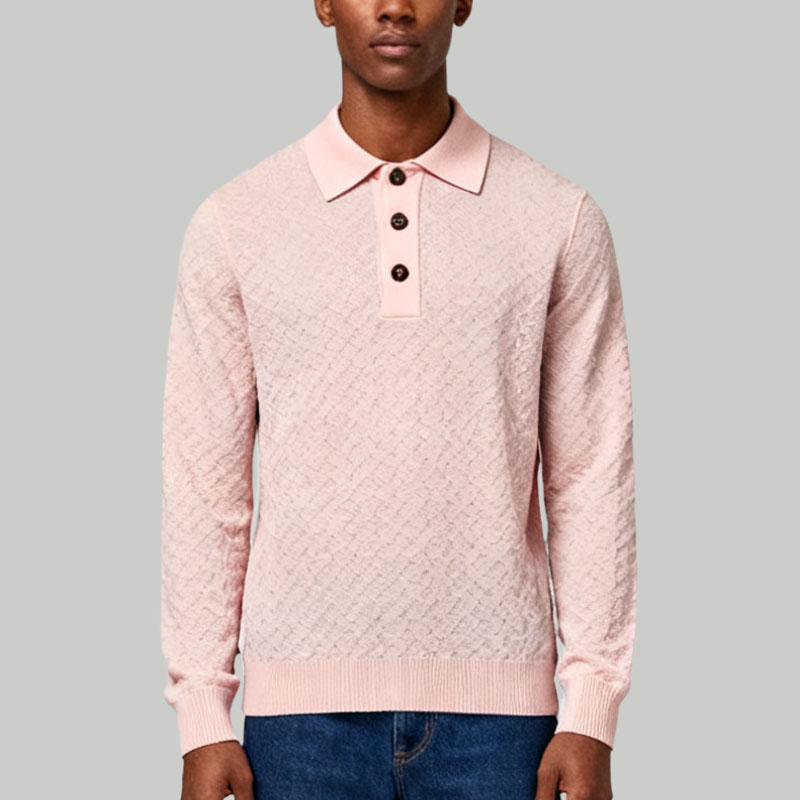 Men’s Light Pink Knitted Polo Shirt Soft Long Sleeve Casual Sweater