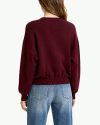 This women’s sweater is made from a blend of 98% recycled polyester and 2% spandex. The fabric is soft, stretchy, and colorfast!