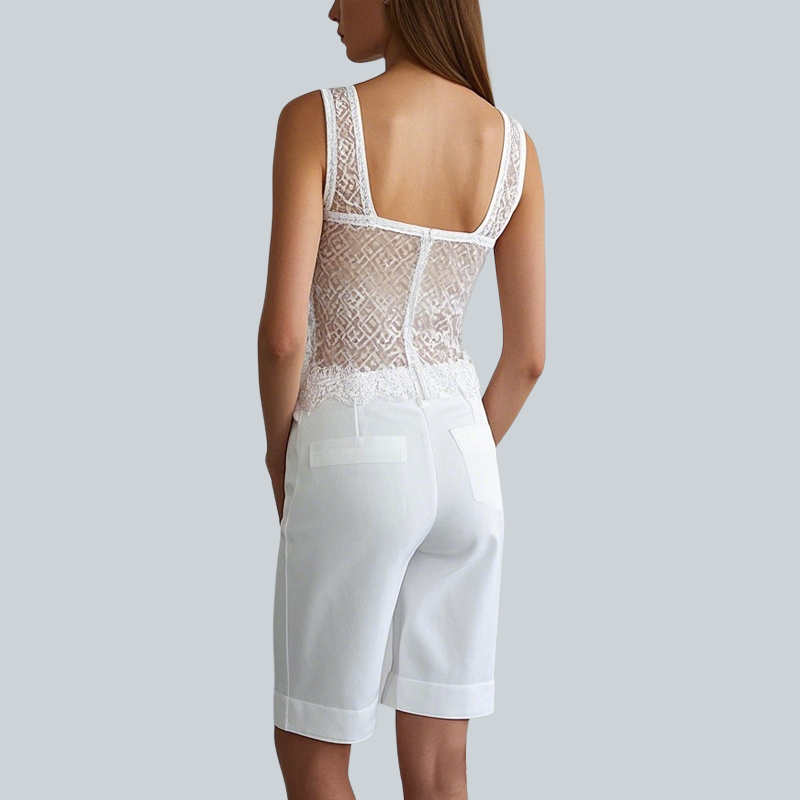 The ergonomic cut allows the vest to perfectly contour to your body, creating a confident and alluring look. The perfect length allows it to be paired with high-waisted pants, skirts, or shorts for a variety of stylish looks.