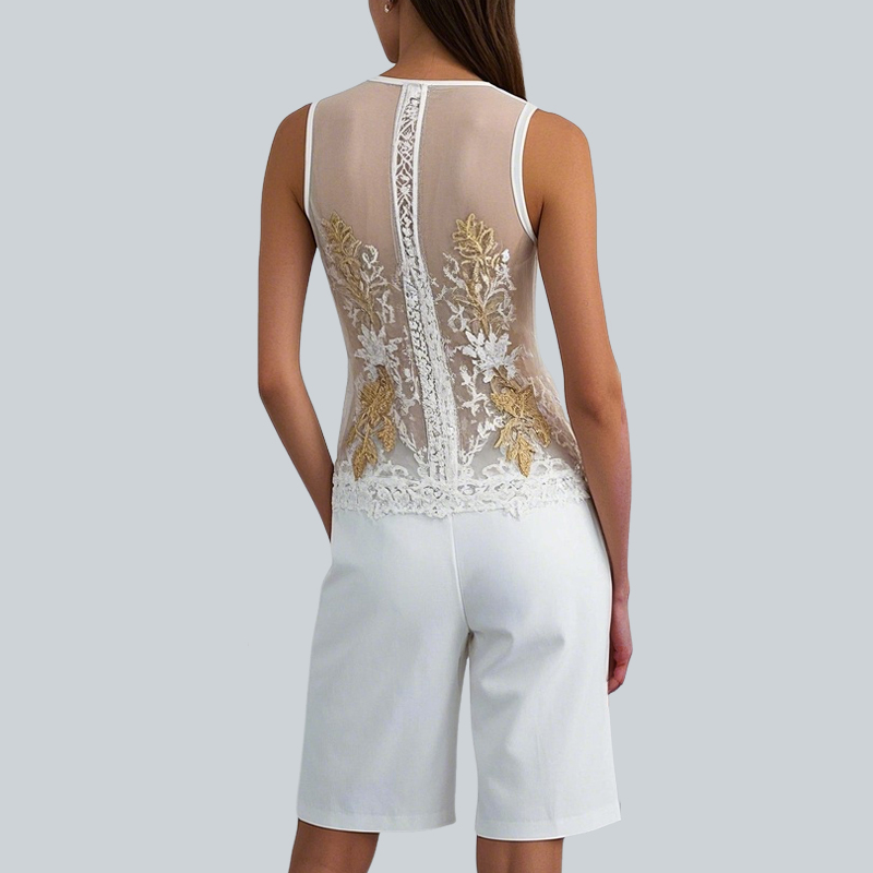 Women’s Sleek Neat Embroidered Tank Top Elegant and Versatile